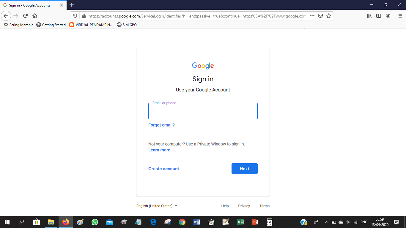 alamat email yang aktif untuk login ke akun Anda di google kemudian buka google